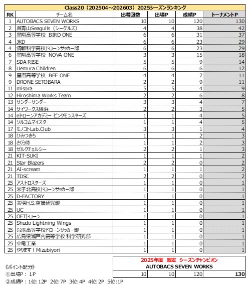 《シーズンランキング(2025年度)》